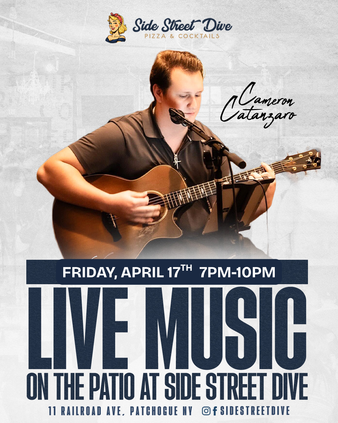 Back to All Events Live Music on the Patio with Cameron Catanzaro Friday, April 17, 2026 7:00 PM 10:00 PM Google Calendar ICS Kick off your Friday night the right way at Side Street Dive with live music from Cameron Catanzaro, performing from 7–10PM on the patio. Good vibes, great music, and your favorite cocktails and bites all night long.